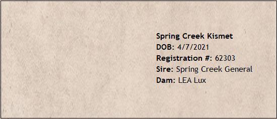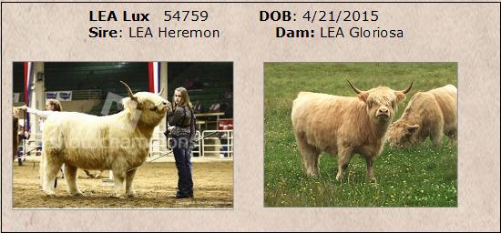 Sire: LEA Heremon Dam: LEA Gloriosa