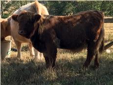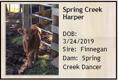 Spring Creek Delta was an early surprise born in November 2015. She wasn't expected until February 2016. Her dam is Spring Creek Georgia. Her sire is Skye High Capone from whom we expect many more beautiful calves.