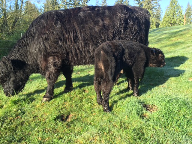 Spring Creek Eastwood, our first black bull calf was born 4/8/2016 to proud dam, Victoria. His sire is our own Capone.